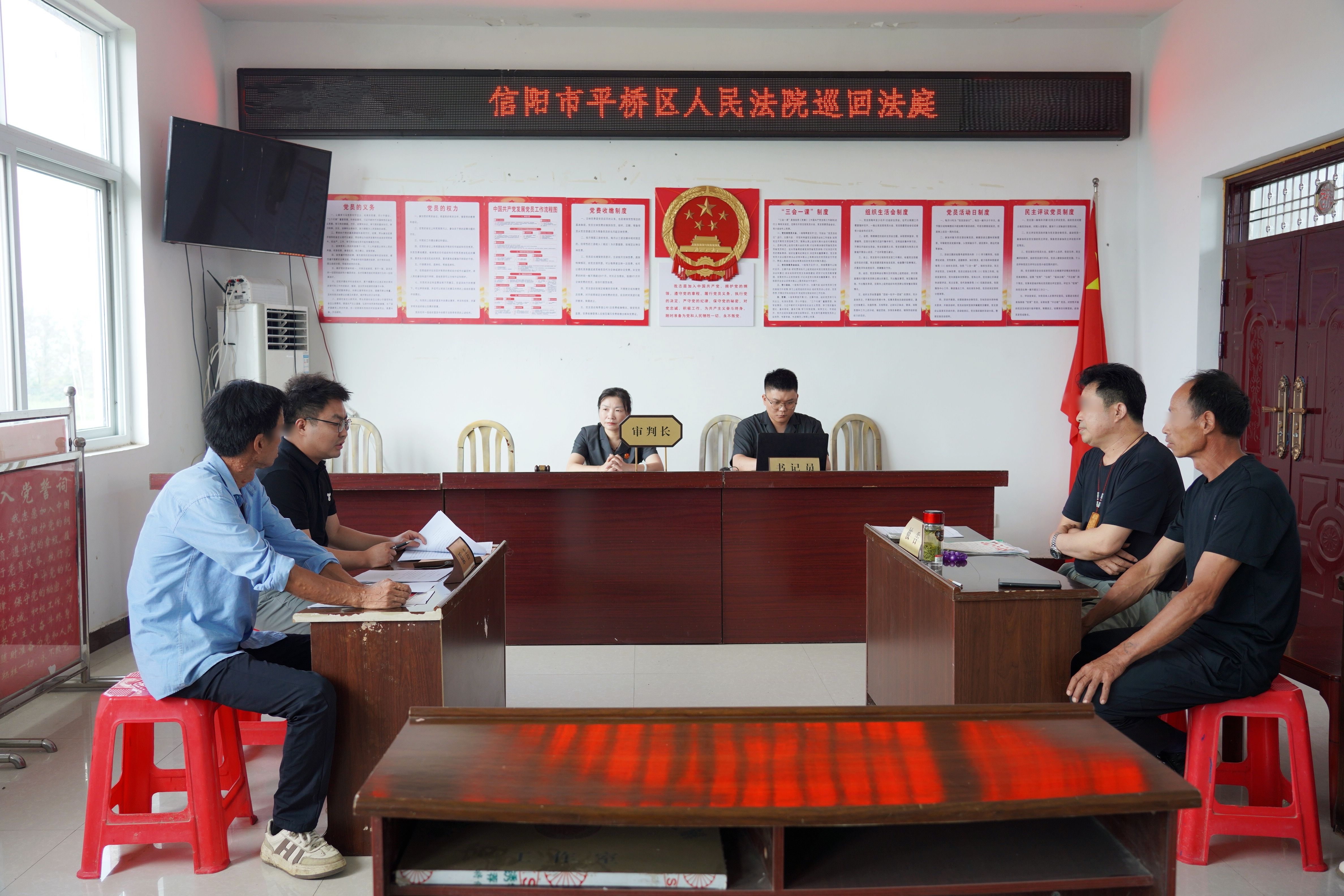 为深入践行司法为民宗旨,将矛盾纠纷化解在基层,6月26日,信阳市平桥区人民法院明港法庭将庭审现场“搬”到了三官庙村委会,巡回审理一起排除妨害纠纷案件。